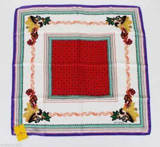 <div style="text-align:center"><img src="http://ti2.auctiva.com/sw/java.gif" border="0"><br><table align="center"><tr><td><a style="text-decoration:none" href="http://emporium.auctiva.com/zehavi" target="_blank"><img src="http://ti2.auctiva.com/sw/browse1.gif" border="0"></a></td><td height="23px" valign="middle" align="center"><font face="arial" size="2"><b><a href="http://emporium.auctiva.com/zehavi" target="_blank">zehavi</a> Store</b></font></td></tr></table></div> <img src="http://ti2.auctiva.com/web/aswCredit.gif" border="0"><br><a href="http://www.auctiva.com/?how=scLnk2" target="_blank"><img src="http://ti2.auctiva.com/images/sc1line2.gif" border="0"></a> Offered for sale is a 100% guaranteed authentic Etro (Milano Italy) paisley/geometric patterned scarf. Condition: New with tags! Features a color palette of varying shades of red, white, purple, peach, green, black and other colors with rolled hems. Large red square center. Fabric content: 100% silk. Measures approximately 26" by 26”. Measurements are approximate! Made in Italy of course! From a smoke free, and pet free home! INTERNATIONAL BUYERS: IMPORTANT!! I MUST ship via USPS Express Mail to the following countries: Russia, Russian Federation, Ukraine, Armenia, Azerbaijan, Belarus, Georgia, Kazakhstan, Kyrgyzstan, Moldova, Tajikistan, Turkmenistan, and Uzbekistan. PLEASE DO NOT PAY UNTIL I HAVE SENT YOU AN INVOICE. USPS Mail is the fastest, and safest method of shipping for both buyer and seller, and includes tracking, signature and insurance.