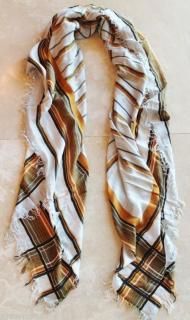 <div style="text-align:center"><img src="http://ti2.auctiva.com/sw/java.gif" border="0"><br><table align="center"><tr><td><a style="text-decoration:none" href="http://emporium.auctiva.com/zehavi" target="_blank"><img src="http://ti2.auctiva.com/sw/browse2.gif" border="0"></a></td><td height="21px" valign="middle" align="center"><font face="arial" size="2"><b><a href="http://emporium.auctiva.com/zehavi" target="_blank">zehavi</a> Store</b></font></td></tr></table></div> <img src="http://ti2.auctiva.com/web/aswCredit.gif" border="0"><br><a href="http://www.auctiva.com/?how=scLnk2" target="_blank"><img src="http://ti2.auctiva.com/images/sc1line2.gif" border="0"></a> Offered for sale is a 100% guaranteed authentic Etro (Milano Italy) plaid patterned scarf. Condition: New! Retails: $570 ($615 with tax). Features a multi-color palette of super light-beige white, golden brown, light orange, brown, black on a large square plaid print with fringe hems. Fabric content: 90% modal and 10% cashmere. Off-the-charts soft! Measures approximately 51" by 51”. Made in Italy of course! From a smoke free, and pet free home.