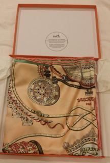 I am helping my aunt clear out some of her items (many are new). I will be listing many other items, so please check out my other auctions. This is a very nice Hermes Paperole silk scarf that is new and comes in the Hermes box. It features a pretty horse and carriage motif. Please note it does have creasing due to being folded in the box. Please look at the picture of the box-there are a few bubbles on the lid. Please ask all questions as I will not accept returns. If you would like additional pictures, just ask. I will only ship to a Paypal confirmed address, to the lower 48 states, and shipping will be free. Payment is expected within 3 days and I accept Paypal. Thank you and happy bidding!