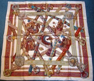 sk8hoven Store HERMES SILK SCARF SHAWL CARRE "LA SONGE DE LA LICORNE" BY ANNIE FAIVRE 35" / 90cm SQUARE NEW AND UNWORN ISSUE DATE 2013 IVORY/MULTI BOUGHT AT THE PARIS SALE / "S" STAMPED The scarf features highly decorated belts/straps and unicorn/horse motifs In typical Annie Faivre signature style the design is highly elaborate with lots of detailed pattern and colour. Hidden within the design are the artist's trademark "monkeys". The scarf has a white ground with the design featuring many, many colours including pink, tomato, gold, blue, yellow, magenta ans silver. The scarf is in superb, new condition without defects. no holes, thread pulls, odours, stains this is a sale item / S stamp present plump, hand rolled and hand sewn hems care tag present does not include original box guaranteed 100% authentic I combine shipping - please ask me for a combined invoice if you wish to make multiple purchases Thanks for looking!