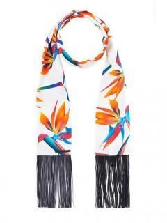 Etro (Milano Italy) Long Scarf 100% Silk Sheer Multi-Color Orange Blue Fuchsia